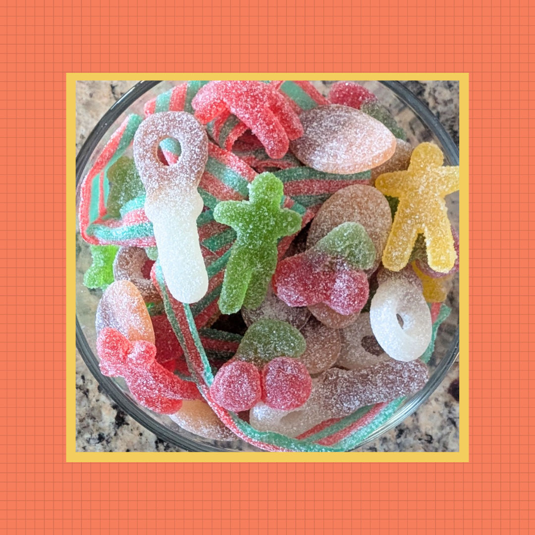 E296, E330, E350), MODIFIED POTATO STARCH, ACIDITY REGULATOR (E500), CARAMEL SYRUP, FLAVORING], STRAWBERRY APPLE BELT [SUGAR, GLUCOSE-FRUCTOSE SYRUP, WHEAT FLOUR, MALIC ACID, DEXTROSE, PALM OIL, CITRIC ACID, ARTIFICIAL FLAVORING, TURMERIC OLEORESIN (COLOR), ARTIFICIAL COLORS (FD&C BLUE 1, FD&C RED 40), TOCOPHEROLS, ASCORBIC ACID], SOUR CHERRIES [GLUCOSE SYRUP (CORN), SUGAR, WATER, GELATIN, MODIFIED CORN STARCH, CITRIC